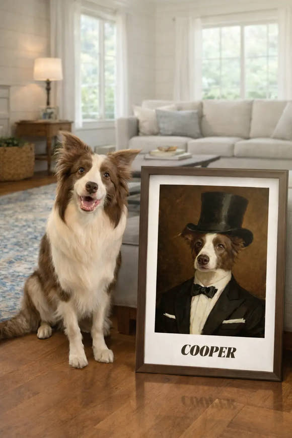 The Aristocratic Gentleman Framed Pet Portrait | Custom Commander Wall Art