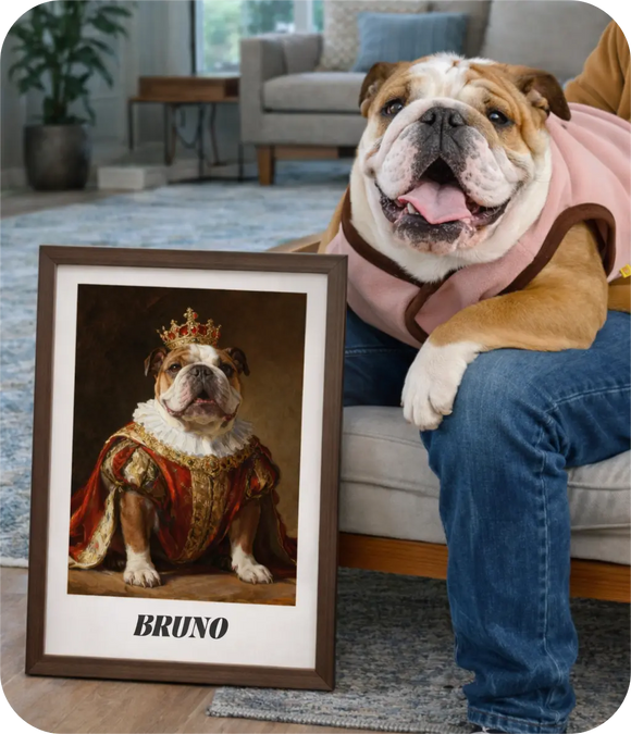 The Coronation King Framed Pet Portrait | Custom Royal Wall Art