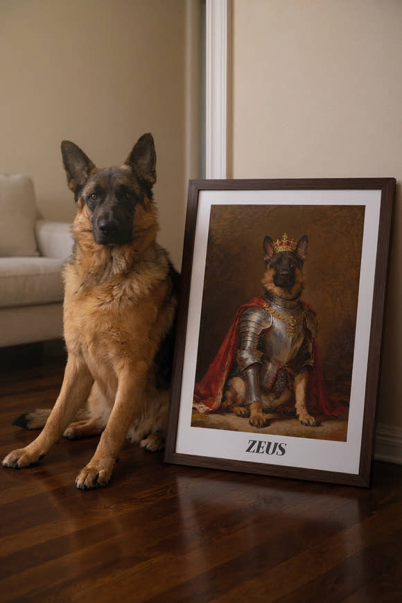 The Imperial Knight Framed Pet Portrait | Custom Royal Wall Art