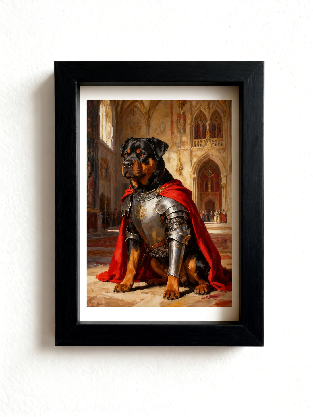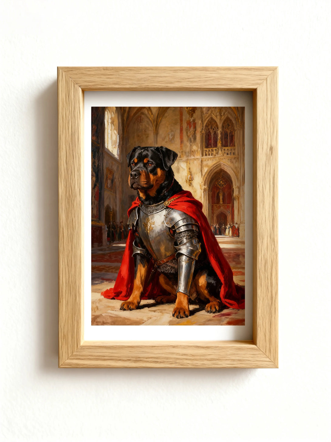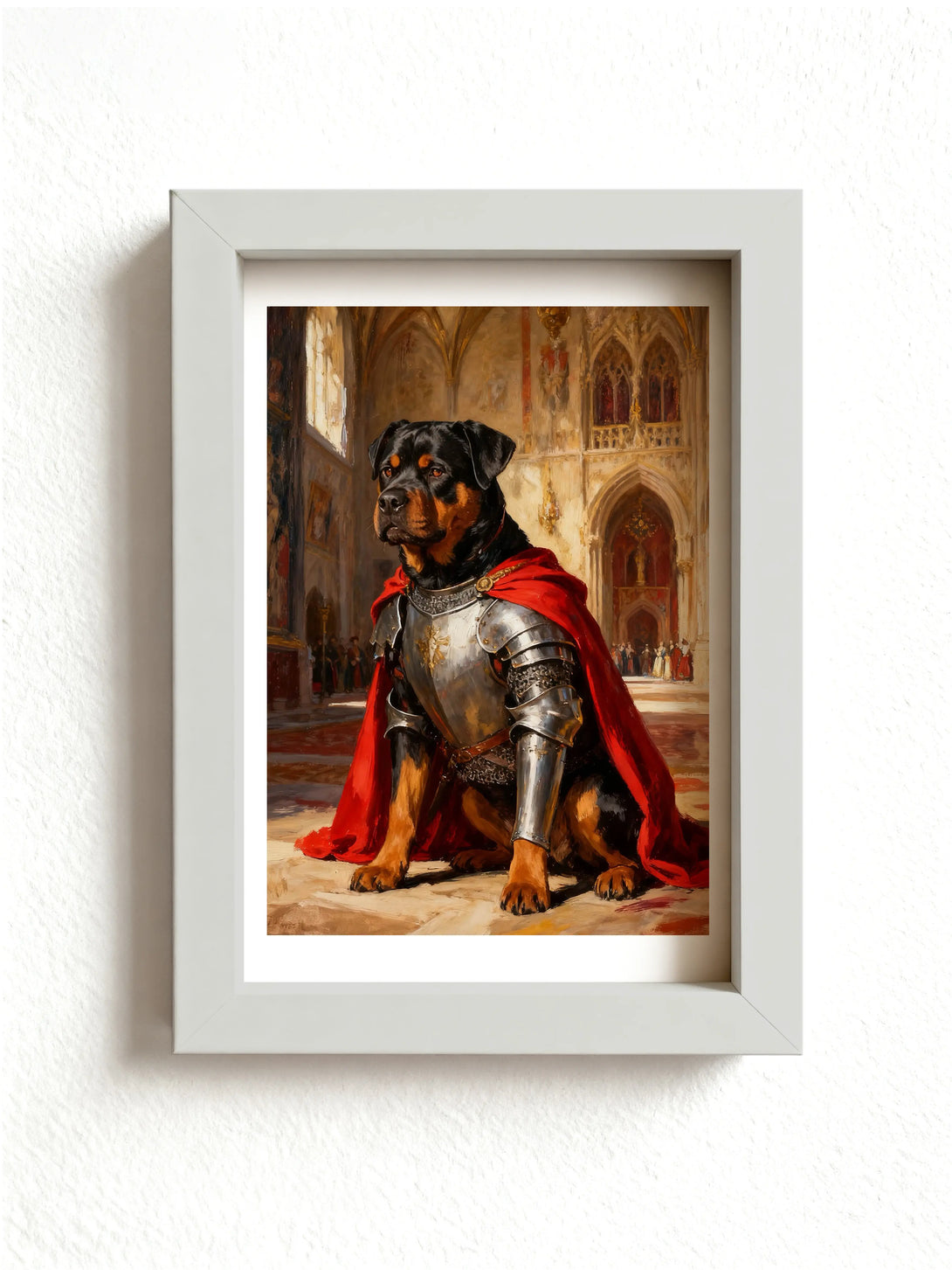 Strength, courage, and unshakable loyalty — this portrait transforms your pet into a Royal Guardian, the noble protector of the crown. Inspired by medieval knightly portraiture, it features gleaming steel armor,...