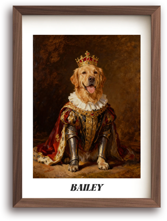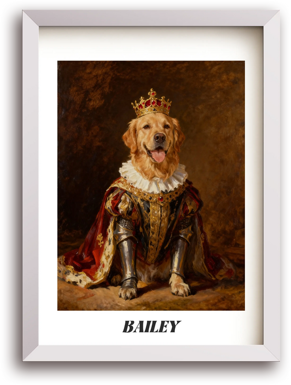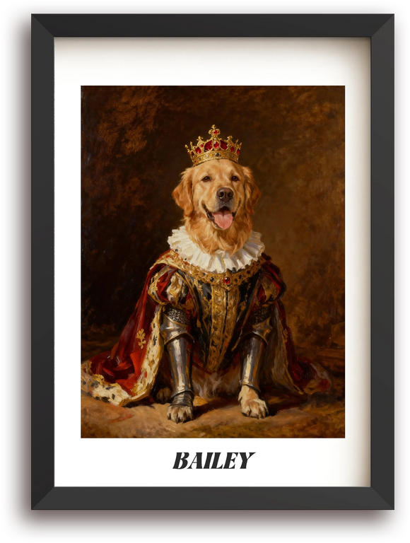 The Sovereign King Framed Pet Portrait | Custom Royal Wall Art