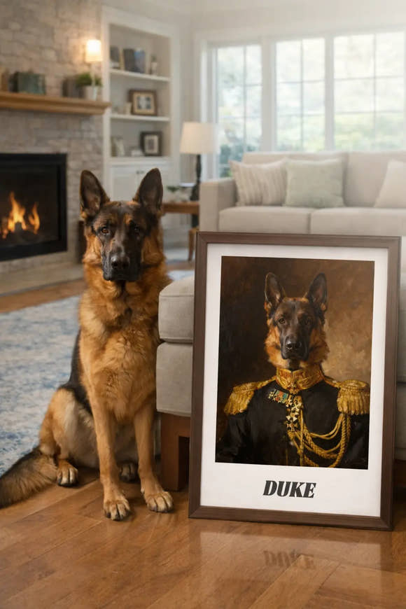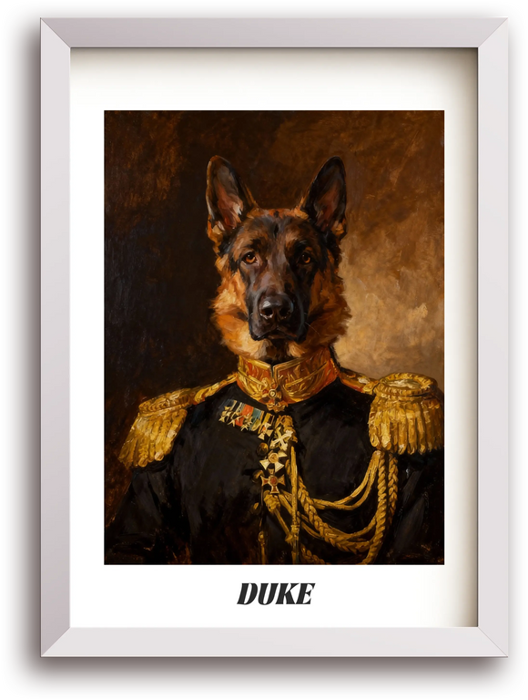 The Supreme General Framed Pet Portrait | Custom Commander Wall Art