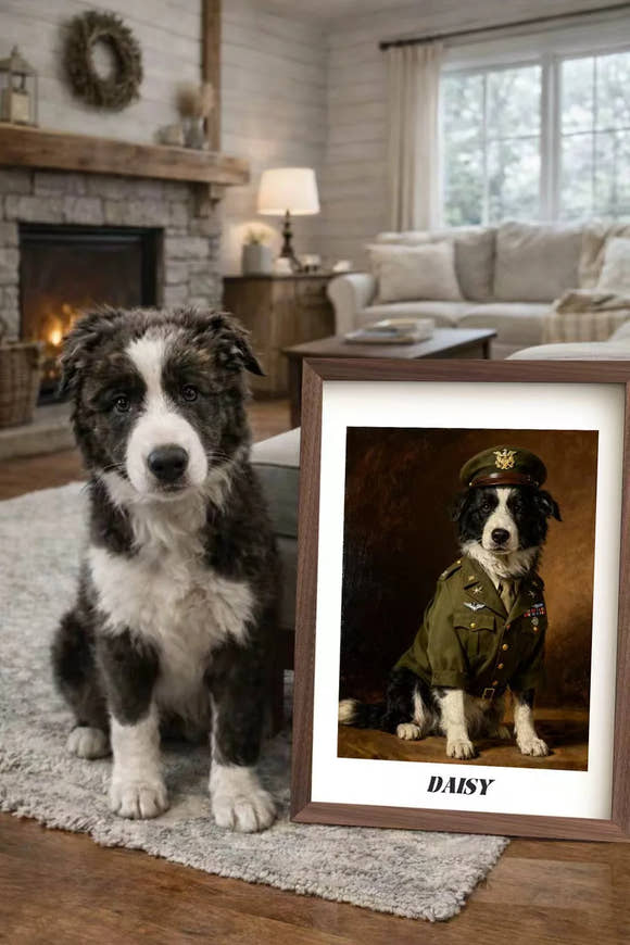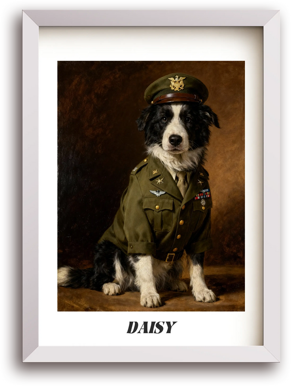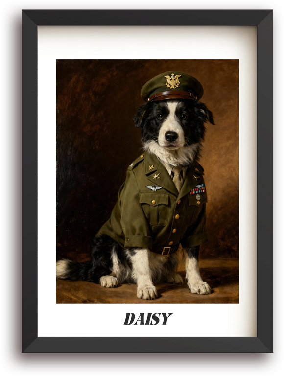 The World War II Officer Framed Pet Portrait | War Heroes Custom Wall Art